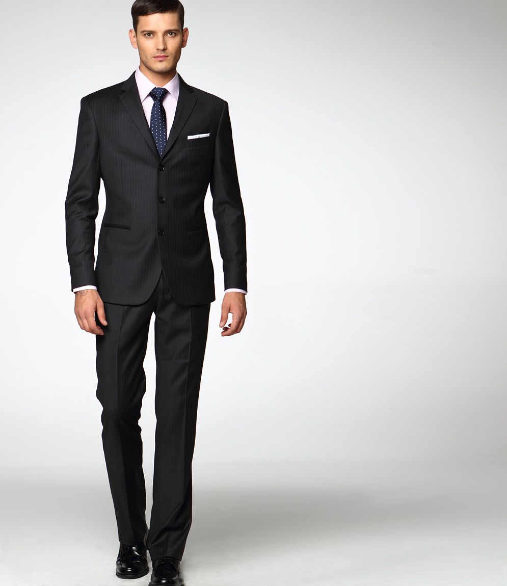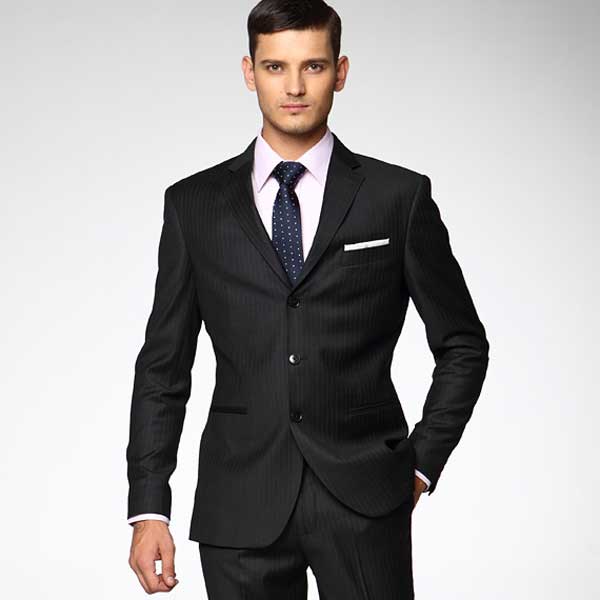 設計說明:此款西服一款純黑色修身西服套裝,完美做工,3D立體裁剪,上身效果更是體現出完美。